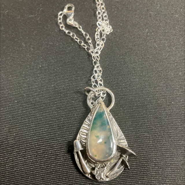 Moss agate and fungi pendant