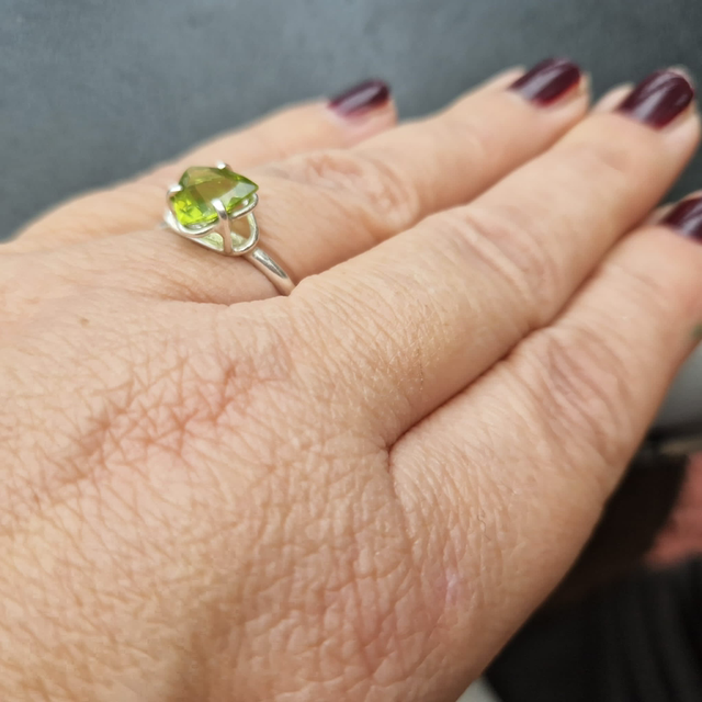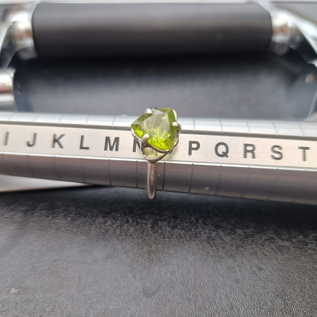 Sterling silver double basket set peridot ring size N/O